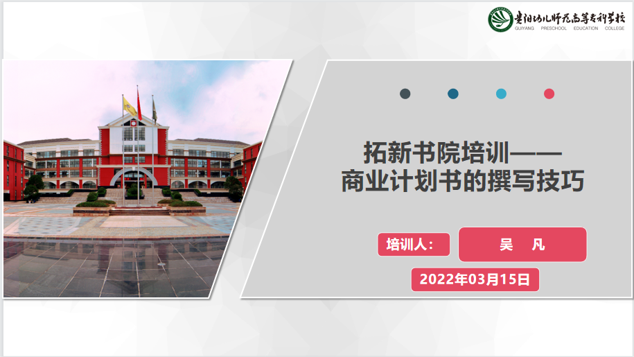 2022年03月15日下午,由我校拓新书院组织的《商业计划书的撰写技巧》培训在知行楼多功能报告厅进行,该培训由我校实验实训中心吴凡老师主持培训。